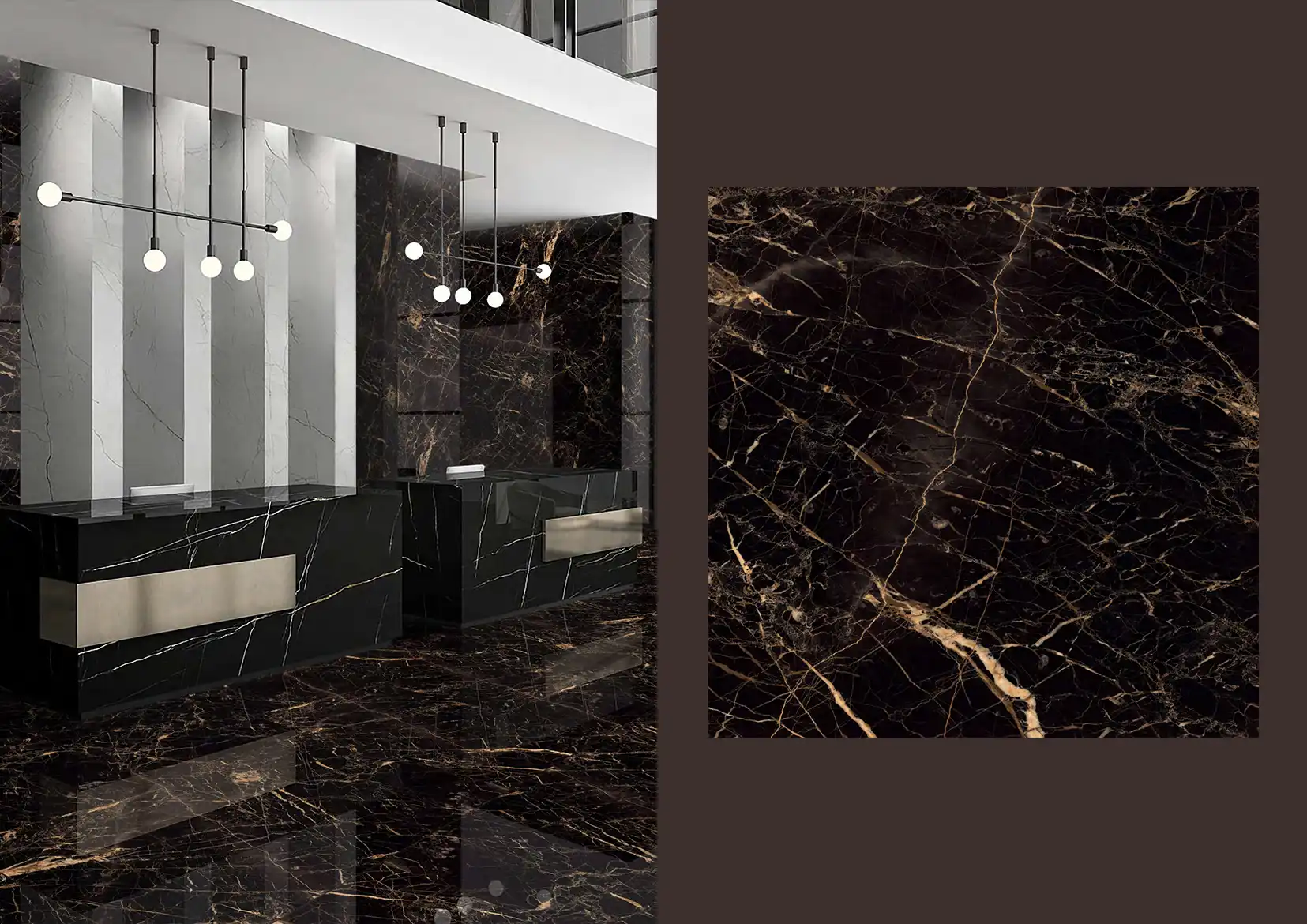 Golden Black is a statement tile that transforms spaces into expressions of refined elegance.